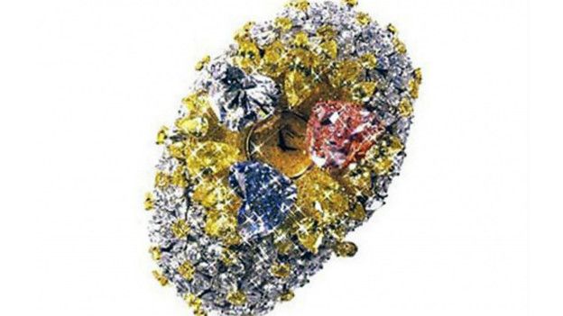 – 1 almasi yenye umbo la moyo na rangi ya waridi , karati 15.37. – 1 Almasi yenye umbo la moyo,na rangi ya samawati, karati 12.79. – 1Almasi yenye umbo la moyo yenye rangi ya D,Karati 11.36. – 3 Almasi zenye umbo la tunda rangi ya njano karati, 8.45 . – 26 Almasi zenye umbo la tunda rangi ya Njano Karati, 17.07 – 48 Almasi zenye umbo la mduara rangi ya njano karati, 8.81 – 260 Almasi zenye umbo la tunda rangi ya D karati 60.94 – 91 Alamsi zenye umbo la mduara rangi ya, D karati 10.29. – 443 FC Almasi za FC za rangi ya manjano karati, 4.95