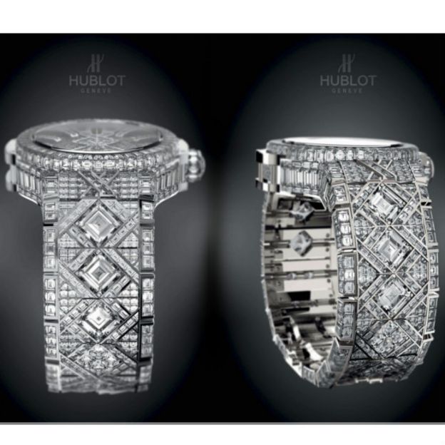 Saa hii aina ya Hublot -Big bang imeundwa kwa kuunganisha Almasi 1280 zenye ubora wa karati 3 kila moja.